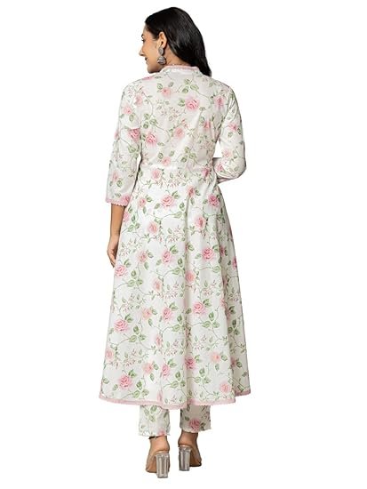 Amayra Women’s Cotton Printed Anarkali Kurta with Palazzo Pants and Dupatta
