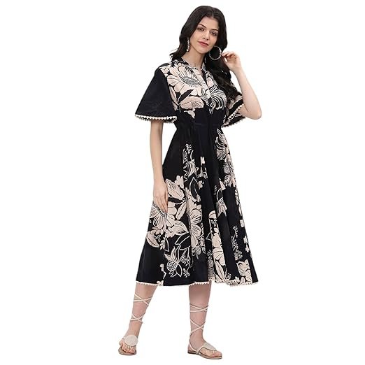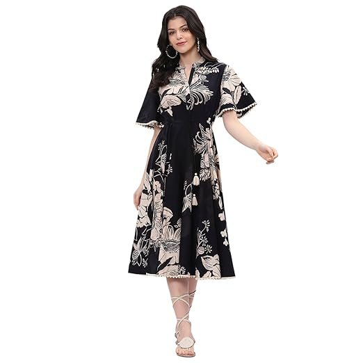 BIBA Women Casual Below The Knee Cotton Flared Printed Dress