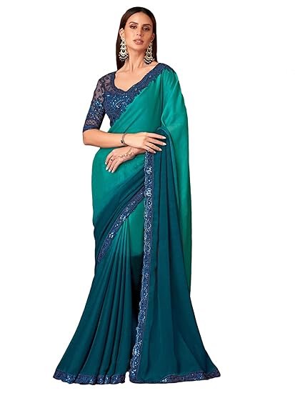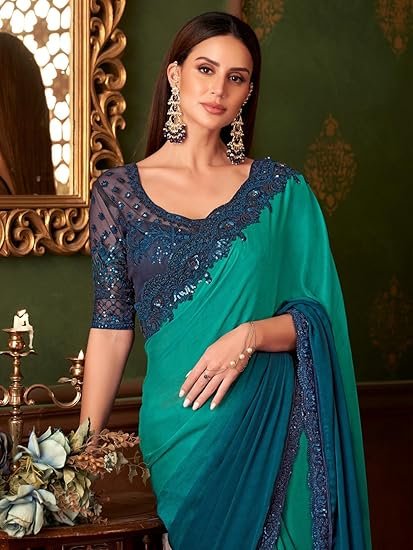 • Color: Turquoise Saree || Navy Blue Blouse