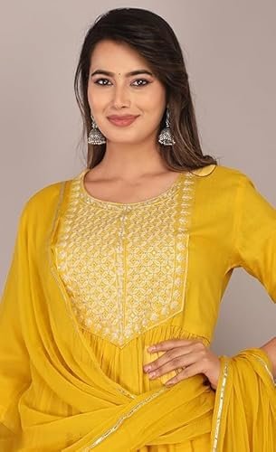 Women’s Rayon Slub 3/4 Sleeves Round Neck Embroidery Kurti with Sharara & Dupatta Set