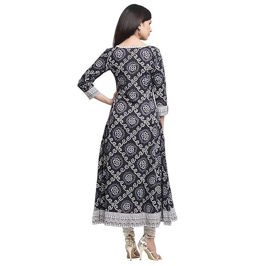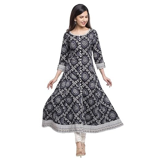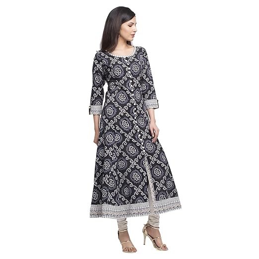Yash Gallery Women’s Cotton Relaxed Fit Anarkali Bandhej Printed Kurta
